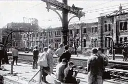 Die alliierten Luftangriffe auf Japan begannen im April 1942 und richteten insbesondere in den Ballungszentren große Schäden am Bahnnetz an. Auf Okinawa wurde es 1945 vollständig zerstört und später nicht wieder aufgebaut. Andernorts kam der Bahnverkehr wegen der Schäden, des mangelnden Unterhalts und des Personalmangels beinahe zum Erliegen. Kollisionen und Entgleisungen häuften sich, die Anlagen waren in schlechtem Zustand.[42] Bei Luftangriffen starben 4403 Bahnangestellte, während 1494 Fahrgäste getötet oder verletzt wurden. Trotz allem verkehrten am 15. August 1945, dem Tag der Kapitulation Japans, weiterhin Züge.[45]