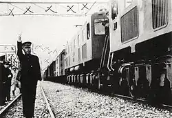 1904 stellte die Kōbu Tetsudō als erste Bahngesellschaft eine Strecke von Dampftraktion auf elektrischen Betrieb um – ein 11 km langes Teilstück der Chūō-Hauptlinie, das zwei Jahre später in staatlichen Besitz überging.[40] Elektrifiziert wurden zunächst fast ausschließlich Nahverkehrsstrecken oder besonders steile Gebirgsbahnen wie der Abschnitt der Shin’etsu-Hauptlinie über den Usui-Pass. Der 1914 eröffnete Bahnhof Tokio, eines der wichtigsten Infrastrukturvorhaben der Taishō-Zeit, war von Anfang an mit elektrischen Zügen erreichbar.[39] Die Yoshima-Kleinbahn in der Präfektur Fukushima setzte 1921 erstmals Dieseltriebwagen ein; das Eisenbahnministerium folgte ab 1929 diesem Beispiel.[38]