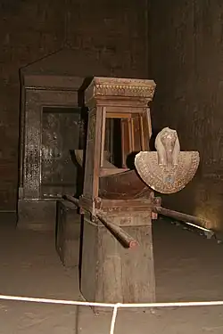 Dies waren aus Holz gebaute Kopien der ursprünglich aus Papyrus geformten Boote, die für zeremonielle und kultische Zwecke sowie für den Transport der Toten verwandt wurden.
