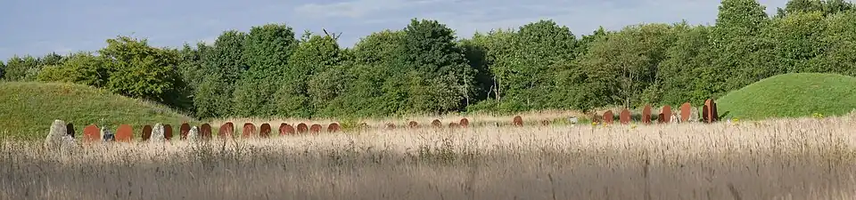 Eine Untersuchung des östlich der Schiffssetzung liegenden Hügels ergab, dass er dreistufig aufgebaut war. Die beiden inneren Hügel sind von einer aus mehreren Schichten bestehenden etwa einen Meter hohen Steinmauer umgeben.