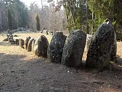 Ungefähr 200 Meter östlich davon liegt ein Gräberfeld, das aus einer Grabröse und acht runden Steinsetzungen besteht.[4] Ein anderes großes Grabmonument in Gnisvärd ist eine weitere Röse, die zwischen den Schiffssetzungen und dem Fischerdorf Gnisvärd liegt. Sie hat einen Durchmesser von 23 Metern und eine Höhe von 2,7 Metern.[5]