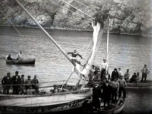 - ↑ a b Metaxia Tsipopoulou, Maria Antoniou, Stavroula Massouridi: Die Untersuchungen der Jahre 1900 und 1901. In: Andrea Bignasca (Hrsg.): Der versunkene Schatz. Das Schiffswrack von Antikythera. Antikenmuseum Basel 2015, ISBN 978-3-905057-34-8, S. 66–97.