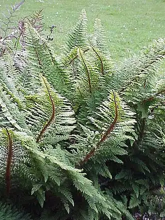 - Polystichum ×lonchitiforme (Halácsy) Becherer = Polystichum lonchitis × Polystichum setiferum.