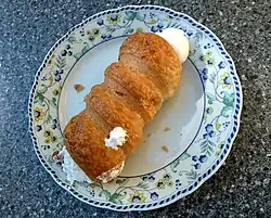 Schillerlocken, insbesondere in Österreich auch als Schaumrollen bezeichnet, sind ein tüten- oder rollenförmiges Gebäck aus Blätterteig, das gesüßt mit Schlagsahne oder Creme, ungesüßt mit Ragouts, Salaten oder Pürees gefüllt wird.[1]