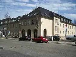 Ehemaliges Verwaltungsgebäude der Wehrmacht. Es wurde 1939 als Dienstgebäude für einen Divisionsstab erbaut. Das Grundstück war ursprünglich Teil des Gartens der Villa in der Karl-Liebknecht-Straße 25. Diese wurde 1938 von der Heeresstandortverwaltung und als Wohnsitz des Divisionskommandeurs eingerichtet. Zeitgleich erfolgten Planungen für die Einrichtung des Divisionsgebäudes. Bemerkenswert war die spätere, im Stadtplan von 1943 noch nicht verzeichnete Erweiterung nach Norden, die die Bauformen des Ursprungsbaus weiterführt. Nach 1945 war es Sitz der Reichsbahndirektion und der sowjetischen Kommandantur. Das Gebäude stand seit den frühen 1990er Jahren viele Jahre leer. Zurzeit befinden sich in dem Haus verschiedene Fachärzte und eine Apotheke. Es handelt sich um einen zweigeschössigen Baukörper mit Walmdach auf L-förmigem Grundriss mit einem Eingangsvorbau mit Loggia an der Südwestecke und einem Anbau im Hof. Der spätere nördliche Teil ist etwas erhöht und hebt sich vom Ursprungsbau an der Hofseite durch andere Fenstereinfassungen ab. Das nicht unerhebliche Bauvolumen ist durch die Differenzierung der Baukörper, durch Wandvorsprünge und unterschiedliche Dachhöhen untergliedert. Einziges Gliederungselement der rau geputzten Wandflächen sind die bauzeitlichen, durch Quersprossen unterteilten Fenster mit Sandsteinrahmung. Der Eingang befindet sich hinter einer durch Arkaden geöffneten Vorhalle. Die Sandsteingewände der Bogenöffnungen sind dekoriert. In den Kreisformen sind teils noch Umrisse in Form des „Eisernen Kreuzes“ erkennbar. Mit den schlichten, traditionellen Formen, dem Steildach und Sprossenfenstern ist das Bauwerk ein typischer Vertreter nationalsozialistischer Architektur. Als kurz vor Kriegsbeginn für einen Divisionsstab errichtetes Dienstgebäude steht es in enger Verbindung mit dem Wohnsitz des Divisionskommandeurs in der angrenzenden Karl-Liebknecht-Straße 25. Als Kommandozentrale der Cottbuser Division während des Zweiten Weltkrieges ist es von stadtgeschichtlicher Bedeutung.