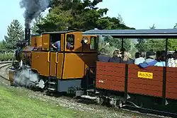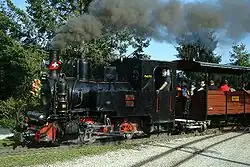 • Die „Taxus“ ist eine ehemalige Brigadelokomotive aus einer Baureihe mit mehr als 1300 Exemplaren für die sogenannten Heeres-Feldbahnbrigaden. Sie wurde 1917 von Krauss in München gebaut und 1951 infolge der Enteignung der Waldeisenbahn Muskau in die Deutsche Reichsbahn integriert. Sie kam 1977 mit 16 Güterwagen zur Schinznacher Baumschulbahn.