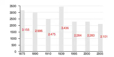 | 1871 | 3250 | in 256 Wohnhäusern[10] |
