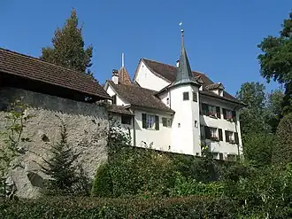 ![]() Ostfassade des Schlössli, links ein Teil der Stadtmauer | ||