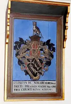 Tafel Georgius de Schlabrendorf. Santi Johannis Magist. Kirche der Komturei Lietzen. Anno 1527.