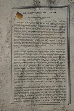 - Karl von Müffling: Zur Kriegsgeschichte der Jahre 1813 und 1814. Die Feldzüge der schlesischen Armee unter dem Feldmarschall Blücher. Von der Beendigung des Waffenstillstandes bis zur Eroberung von Paris. 2. Auflage. Mittler, Berlin 1827.
