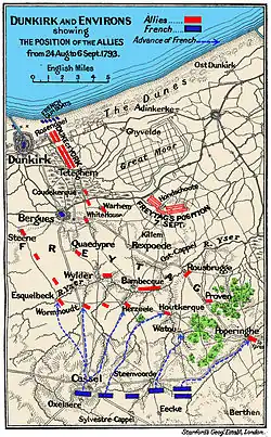 Nachdem die alliierte Armee in Flandern unter Prinz Josias von Sachsen-Coburg-Saalfeld im Sommer 1793 sowohl Condé-sur-l’Escaut als auch Valenciennes erfolgreich belagert hatte, wurde ein Korps von 35.000 Mann unter dem Herzog von York zur Belagerung von Dünkirchen abgestellt. Dieses begann Ende August mit der Belagerung der von etwa 8.000 Franzosen unter Joseph Souham verteidigten Festung, deren Besitz von britischer Seite bei früheren Verhandlungen der Alliierten gefordert worden war.