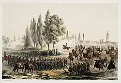 Die Brigade Bianchi, die der Fürst von Liechtenstein persönlich führte, drang durch die Wälder von Fácános bei Pinnyéd in den Vorort Sziget ein, überquerte den Rábca-Fluss und griff im Rücken der ungarischen Truppen an, die den Wiener Vorort verteidigten. Die ungarischen Truppen Liptay hatten die Stellungen zwischen Ménfő und Csanaki geräumt und waren nach Szabadhegy zurückgegangen, die Brigade Oberst Sándor Kossuth führte die Räumung der Stadt durch.