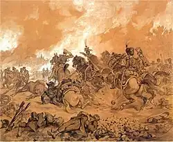 - ↑ Alois Veltzé: Kriegsbilder aus Polen, Steiermark und Ungarn 1809. Wien o. J. (1909), (= Emil von Woinowitch, k. u. k. General der Infanterie, Direktor des k. u. k. Kriegsarchivs, und k. u. k. Hauptmann Alois Veltzé (Hrsg.): Das Kriegsjahr 1809 in Einzeldarstellungen, 11. Band), S. 26.