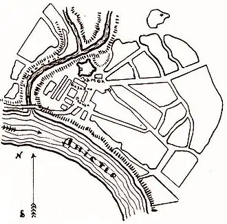 ![]() Plan der Festung Schwanez (1876) | |||||||||||||||||