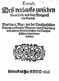 - Historische Karte von 1627: Abriss der Schlacht, so zwischen Herrn Marggrafen von Durlach und Monsieur Tylli, als Kays. und Bayrischen Generaln vorgangen
