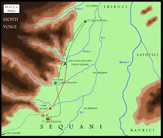 Die Schlacht im Elsass war ein Kampf am 14. September[1] 58 v. Chr. zwischen römischen Truppen unter Führung von Gaius Iulius Caesar und einigen wohl hauptsächlich germanischen Stämmen, die sich unter der Führung des Ariovist, des Königs der Sueben, vereint hatten. Sie war die Entscheidungsschlacht in der zweiten Auseinandersetzung im Gallischen Krieg (nach dem Helvetierkrieg), die mit einem Sieg Caesars endete. Die Schlacht wird im ersten Buch von Caesars De Bello Gallico geschildert,[2] wo er als Gegner neben den Sueben die Haruder, Markomannen, Vangionen, Nemeter, Sedusier und Triboker auflistet.