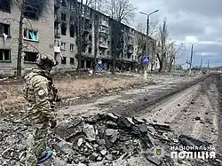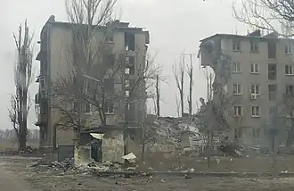 Im März 2023 lagen mittlerweile ganze Straßenzüge in Trümmern.[53] Im selben Monat schlugen täglich etwa 300 Artilleriegranaten in der Stadt ein. Im März flogen die russischen Streitkräfte außerdem 20 Luftangriffe auf die Stadt.[22]