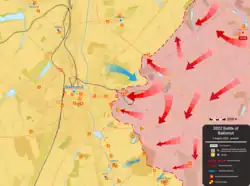![]() Der Frontverlauf in und um Bachmut Mai 2022 – März 2023 | |||||||||||||||||||