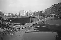 In diesen letzten Kriegstagen kam es zu ausgedehnten Zerstörungen von Gebäuden und der Verkehrs-Infrastruktur. So wurden unter nicht geklärten Umständen das Warenhaus Karstadt am Hermannplatz und der Nord-Süd-Tunnel der S-Bahn unter dem Landwehrkanal gesprengt, was eine Flutung großer Teile der U-Bahn und den Tod von ein- bis zweihundert Menschen zur Folge hatte (→ Geschichte der Berliner U-Bahn).[40]
