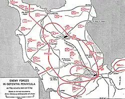 Die deutschen Einheiten waren zwar zahlenmäßig unterlegen, konnten aber, da sie das Gelände und die Bocage-Landschaft für sich nutzten, den Vormarsch der alliierten Verbände verlangsamen, obwohl General Omar Bradley die Truppen auf dem Cotentin gut mit Nachschub und Verstärkungen bedachte.