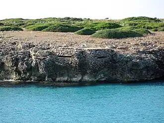 ![]() Küstenbefestigung aus der Zeit des Bürgerkrieges an der Ostküste Mallorcas an der Caló d’en Rafalino südlich von S’Illot | |||||||||||||