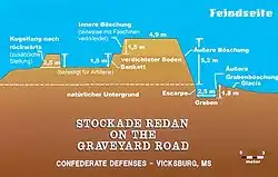 Grant befahl am 25. Mai den Kommandierenden Generalen, mit der Belagerung zu beginnen. Dabei sei es wünschenswert, keine Menschenleben mehr zu verlieren. Gleichzeitig befahl er Gräben so anzulegen, dass Artillerie nach vorne gebracht und Minen unter den konföderierten Stellungen gezündet werden konnten. Die Leitung dieser Arbeiten übertrug er den Pionieroffizieren der Kommandos.[20] Am 26. Mai begannen die Bauarbeiten. Bis zu 300 Soldaten waren gleichzeitig beim Bau eines Annäherungsgrabens eingesetzt. Die Sappen verliefen im Zickzack auf die gegnerischen Stellungen zu. Sie waren ungefähr 2,40 m breit und 2,10 m tief. Artilleriegeschütze konnten so in Deckung nach vorne gebracht werden. Ausgediente Eisenbahnwaggons, auf denen Baumwollballen befestigt waren, dienten den grabenden Soldaten als Sichtschutz. Insgesamt legte die Tennessee-Armee neun Annäherungsgräben an.[21]