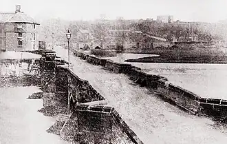 ![]() Die mittelalterliche Brücke über den Trent bei Burton (Foto vor 1863). Die Brücke wurde 1863 durch eine neue ersetzt. | |||||||||