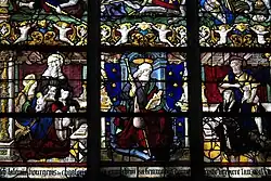 Das 4,50 Meter hohe und 2,20 Meter breite Fenster Nr. 27 (nach dem Schema von Corpus Vitrearum Medii Aevi) der Kirche stellt die angebliche Schlacht von Clavijo dar. Links unten ist die kniende Stifterin und rechts unten der kniende Stifter mit Johannes dem Täufer mit Lamm zu sehen. Dazwischen ist Jakobus der Ältere als Pilger dargestellt, dessen Verehrung mit der Reconquista Spaniens und der späteren Wallfahrt auf dem Jakobsweg nach Santiago de Compostela in Verbindung steht. Am unteren Rand werden in einer Inschrift die Stifter des Fensters genannt. Jakobus soll der Legende nach durch sein Erscheinen den Sieg bei der Schlacht von Clavijo bewirkt haben.