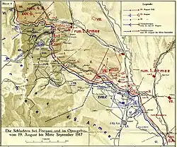Die Schlacht von Mărășești umfasst eine Reihe weiträumiger aber taktisch zusammenhängender Kämpfe im Raum Focșani, die sich vom 6. August (24. Juli) bis 3. September (21. August) 1917 im Kreis Vrancea zwischen den Flüssen Sereth und Putna mit Konzentration an der Linie Muncelu – Mărășești ereigneten. Sie wurde in der deutschen Weltkriegsgeschichtsschreibung traditionell als „Durchbruchsschlacht an der Putna und Sușita“ bezeichnet.[1] Die seit Dezember 1916 intensivsten Kämpfe am rumänischen Kriegsschauplatz, die eine direkte Fortsetzung der Schlacht von Mărăști (22. Juli – 1. August) darstellten, erstreckten sich über einen Zeitraum von 29 Tagen, von denen nur an 16 Tagen größere militärische Aktionen stattfanden. Die großen Verluste bei der Offensive zwangen die Mittelmächte, ihre Angriffe an der rumänischen Front aufzugeben und dauerhaft in die Defensive überzugehen. Aus rumänischer Sicht handelt es sich um die bedeutendste Schlacht des Ersten Weltkriegs, die auch als „das rumänische Verdun“ charakterisiert wird.[2]