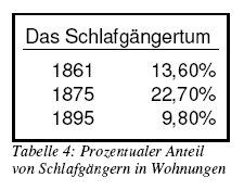 „Diese sozialen Wohnungsschäden sind durch das Schlafgängerwesen stark vermehrt. […] 1895 wurden in Berlin 79.435, in Dresden 19.836 und in Leipzig 19.101 Schlafstellenleute gezählt. In manchen Fällen war dasselbe Bett von zwei oder gar von drei Personen im Achtstundenwechsel innerhalb 24 Stunden benutzt, ohne somit einen Augenblick kalt werden zu können.“