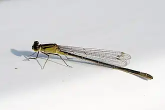 Ein Weibchen der Großen Pechlibelle (Ischnura elegans) aus der Familie Schlanklibellen. | ||||||||||||