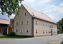 - Haus Nr. 2: Modern aufgestocktes Gasthaus mit Erdgeschoss des ausgehenden 18. Jahrhunderts; Korbbogenportal mit gerader Verdachung[25]