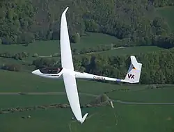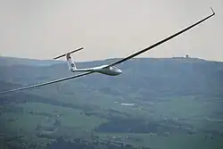 ASH 31 Mi beim Erstflug, rechts am Horizont die Wasserkuppe