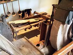 Der Aufbau einer Schleifkote kann an Modellen (beispielsweise auch in der Stadtinformation Ruhla) studiert werden. Das Aufschlagwasser (Oberwasser) wurde der Mühle durch ein Wehr vom Gebirgsbach zugeleitet. Über ein hölzernes Gerinne floss das Mühlwasser (etwa 100 Liter pro Sekunde) in das Wasserrad, dessen typischer Durchmesser wurde mit 4 bis 4,5 m für kleine Räder ausgelegt, das größte Steinbacher Mühlrad hatte sogar 8,4 m Durchmesser. Mit der entstehenden Drehbewegung war, bei optimalen Bedingungen, eine Antriebskraft von 6 bis 11 PS zu erzeugen, die über die Antriebswelle und ein hölzernes Zahnradgetriebe auf die vorhandenen Schleifsteine der Mühle verteilt wurde. Die bis zu einer Tonne schweren Schleifsteine aus Sandstein wurden meist aus Brüchen vom Gothaer Seeberg beschafft. Zum Austausch verbrauchter Schleifsteine oder bei technischen Defekten, meist wenn ein hölzernes Teil des Getriebes brach, musste die Mühlenarbeit unterbrochen werden, das schmälerte Verdienst und Gewinn. Ab 1875 wurden als Folge der Industrialisierung von Eisengießereien erzeugte robuste Zahnräder in normierten Größen und in großer Stückzahl preiswert angeboten. Auch der Einsatz von Treibriemen aus Leder oder Baumwolle verbesserte den Wirkungsgrad der Mühle. Trotz hoher Kosten stellten die Schleifmühlen auf die robuste Technik um. Doch auch dies hatte seine Tücken: die schwere Technik geriet bei Unwucht eines Teils (meist der Schleifscheibe) in Schwingung, die noch aus Holz erbauten Mühlen waren den Belastungen nicht mehr gewachsen und begannen durch lautes Ächzen und Knarren im Gebälk auf ein bevorstehendes Auseinanderfallen zu warnen. Nach dem Ersten Weltkrieg ging die Zahl der Mühlen rapide zurück, auch ersetzte in Steinbach ab 1915 der Elektromotor den Wasserantrieb als Energiequelle. Aus dem Solinger Messerfabriken abgekaufte halbautomatische Schleifmaschinen ersetzten bis 1930 die traditionelle Technik. Die auf das Messerschleifen optimierten Schleifkoten waren für andere Anwendungen nicht zu gebrauchen und wurden von ihren Besitzern aufgegeben. Die letzte Schleifkote wurde in Steinbach nach 1980 abgerissen.[1]