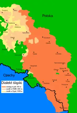 - ↑ Izabela Winiarska: Zasięg terytorialny i podziały dialektu śląskiego. ISBN 978-83-62844-10-4 (edu.pl [abgerufen am 14. Dezember 2018]).