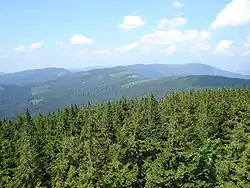 ![]() Blick vom Aussichtsturm auf der Barania Góra | ||