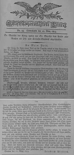 Im Jahr 1813 trug die Zeitung den Titel Schlesische privilegirte Zeitung; in der Ausgabe Nr. 34 vom 20. März 1813 erschien der Aufruf „An Mein Volk“ von Preußenkönig Friedrich Wilhelm, womit die Befreiungskriege gegen das napoleonische Frankreich begannen. Zu dieser Zeit war die Zeitung bereits bei allen königlichen Postämtern Preußens erhältlich.