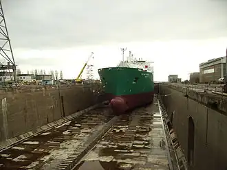 - Beispiel: die 350 Meter lange Schleuse Forme Joubert in Saint-Nazaire am Werfthafen Bassin de Penhoët