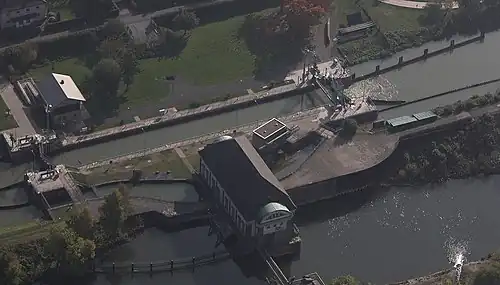 1944 wurde die Schleuse von einer Bombe getroffen und zerstört, 1948 wurde sie wieder aufgebaut.