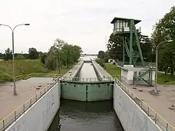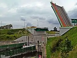 Am 27. Mai 2012 wurde eine neue Klappbrücke über die Zufahrt zur Schleuse in Betrieb genommen.[2] Sie ist für LKW-Verkehr ausgelegt. Über die Brücke verläuft die Verbindungsstraße von der Woiwodschaftsstraße 501 bzw. Weichselfähre bei Świbno (Schiewenhorst) zur Schnellstraße S7.