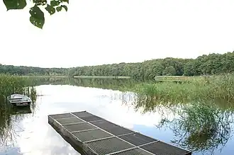 Am südlichen Ufer befindet sich ein Landschaftspark. Das Schloss Wrangelsburg, der Vorgängerbau des später an seiner Stelle errichteten Herrenhauses, stand nach einer schwedischen Matrikelkarte von 1694 in unmittelbarer Nähe des südwestlichen Seeufers.[1]