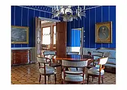 Das Gebäude wird über eine steinerne Brücke auf der Nordseite des Schlosses betreten, die direkt ins schlichte Vestibül im unteren Wohngeschoss führt. Östlich davon liegt das in dunklem Eichenholz vertäfelte Speisezimmer, dessen Paneele aus einer Pariser Manufaktur stammen. Die in der zweiten Hälfte des 18. Jahrhunderts angefertigten Tafeln tragen auf ihren Rückseiten noch immer die Montageanleitungen der französischen Kunsthandwerker. Durch einen kleineren Salon gelangt man in den mit großen Blumenstillleben geschmückten Gartensaal, der durch eine kleine Brücke mit dem Außenbereich verbunden ist. Über einen weiteren Salon führt der Museumsrundgang um das Vestibül herum und in das große Treppenhaus.