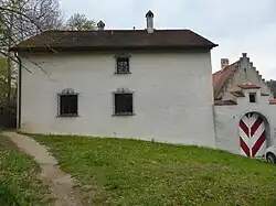 Auch die dazugehörenden Wirtschaftsgebäude stammen aus dem 17. bis 18. Jahrhundert. Den Komplex umgibt eine Mauer, bezeichnet mit der Jahreszahl „1748“. Spuren eines Grabens sind nicht mehr vorhanden. Neben dem Eingangstor stehen zwei große Linde. Zusammen mit der danebenstehenden Kirche St. Martin ergibt das Gebäude eine gute Vorstellung zu früheren kleinen Edelsitzen in der Oberpfalz. Früher führte ein hölzerner Gang vom Oberstock des Schlosses in die Empore der danebenliegenden Kirche. Die rechteckige Eingangsöffnung ist heute vermauert, aber mit den Löchern für die Tragbalken in 5 m Höhe noch gut zu erkennen.