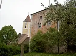 Das heruntergekommene, aber denkmalgeschützte[1] Gebäude des ehemaligen Schlosses ist ein dreigeschossiger Langflügelbau mit einem Walmdach aus dem 17. und 18. Jahrhundert. Das Südportal weist einen Sprenggiebel auf. Im Erdgeschoss befinden sich noch Gewölbe. Östlich ist ein Treppenturm angebaut; hier sind auch Teile des ursprünglichen romanischen Baus eingebaut. Der gegenüber liegende Steinstadel stammt von 1817.