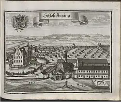 1676 wurden die aus einer Münchner Händlerfamilie stammenden Franz Benedikt und Hans Benno Höger vom Kurfürsten Ferdinand Maria in den Adelsstand erhoben. Von 1633 bis 1783 hatte die Familie ihren Sitz in Anzing. Das Högerische Schloss mit Graben und Brücke stand am heutigen Westrand des Ortes. Daneben wurden die Höger-Kapelle errichtet und ein Schlößl am Kaisersberg.[1] Das Schloss Anzing wurde nach dem Tod des Christoph Höger im Jahr 1800 verkauft und verfiel, es ist heute weitgehend mit neueren Gebäuden überbaut.[2][3]