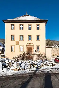 Das ehemalige Schloss wurde um das Jahr 1570 errichtet.[1][2] Im Dreißigjährigen Krieg wurde das Schloss im Jahre 1638 durch einen Brand zerstört und anschließend von 1690 bis 1704 wieder aufgebaut.[2] Im 18. Jahrhundert erfolgte ein Umbau.[1]