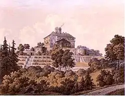 Das mehrfach aufgegriffene[3][4][5] Gerücht, dass Goethe am 14. August 1801 das Schloss Berlepsch besucht habe, stimmt nicht mit seinen Briefwechseln überein, denen zufolge er an dem Tag das Schloss Berlepsch nur aus der Ferne vom Hohen Hahn aus betrachtete.[6][7] 1809 lebte Friedrich Ludwig von Berlepsch auf dem Schloss. Von 1881 bis 1894 gaben Graf Karl Friedrich von Berlepsch und ab 1893 sein Sohn Hans dem Schloss durch umfassende Umbauten und Veränderungen seine heutige Gestalt, zu der auch ein Deckengemälde Carl Wiederholds gehört. Diese Änderungen sind beispielhaft für die späte hannoversche Neugotik und wurden vom Architekten Gustav Schönermark geplant.[8] Der Ornithologe Hans von Berlepsch richtete auf dem Schloss eine vogelkundliche Sammlung ein, und Karl von Berlepsch versammelte von Zeit zu Zeit einen Kreis bekannter Dichter auf dem Schloss. Auf dem Wappenstein am äußersten der drei Tore ist das Wappen der beiden Berlepschlinien eingemauert.