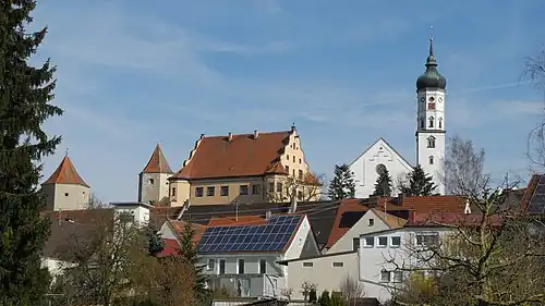 Von der Schlossanlage des 16. Jahrhunderts besteht noch der Schlossbau, der Schlosshof mit einigen Nebengebäuden sowie zwei Türme, die sog. Schertlintürme, die wohl als Ecktürme des Schlosshofes dienten.