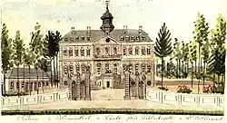 Schloss Blumenthal vor den Umbauten des 19. Jahrhunderts; Aquarell von Philippus van Gulpen