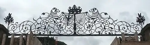 Zugang zu ihm gewährt ein aus dem Ende des 17. Jahrhunderts stammendes schmiedeeisernes Gittertor, das ursprünglich von Schloss Hugenpoet stammt, welches ebenfalls im Besitz der Familie Fürstenberg steht. Nachdem es ab 1846 erst am Hauptzugang der Schlossanlage gestanden hatte, erhielt es in den 1940er Jahren seinen heutigen Standort am Parkeingang. In den oberen Teil des Tores wurde das Stadtwappen von Essen übernommen, nachdem dort ursprünglich das Fürstenbergsche Wappen gezeigt wurde.[7]